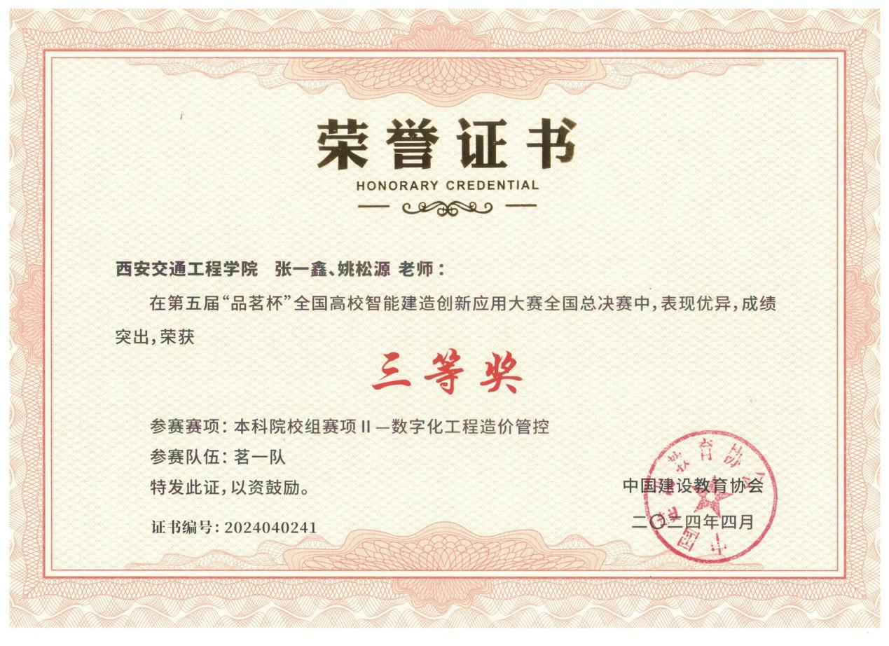 近日,在中国建设教育协会主办,徐州工程学院承办的第五届“品茗杯”全国高校智能建造创新应用大赛全国总决赛中,beat365由土木与铁道工程学院教师张一鑫、姚松源指导的“茗一队”荣获三等奖。