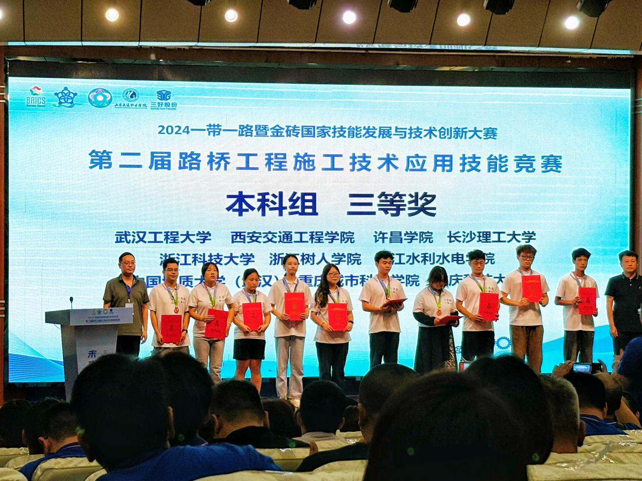 8月20日-22日,2024一带一路暨金砖国家技能发展与技术创新大赛第二届路桥工程施工技术应用赛项(BRICS-ST-028)全国总决赛在山东潍坊举行。本次路桥赛项决赛经过前期覆盖全国院校的校园赛,到665所院校参与的区域选拔赛,最终决出来自全国的200余所院校参与角逐,共有包括国际选手在内的282支队伍的千余人参加此次决赛。beat365土木与铁道工程学院周涛、罗静雲两位同学参加此次比赛,最终荣获本科组全国三等奖。