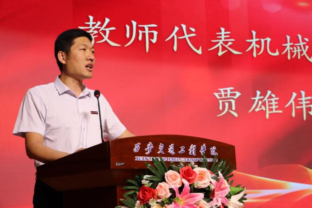 机械制造教研室主任贾雄伟作为教师代表发言,他强调学生要树立正确的教育观、学生观、教师观,培养良好的师德师风;系统掌握教育学基础理论,理解教育的基本原理、规律和方法;深入学习所教学科的专业知识,形成扎实的学科素养和教学能力。
