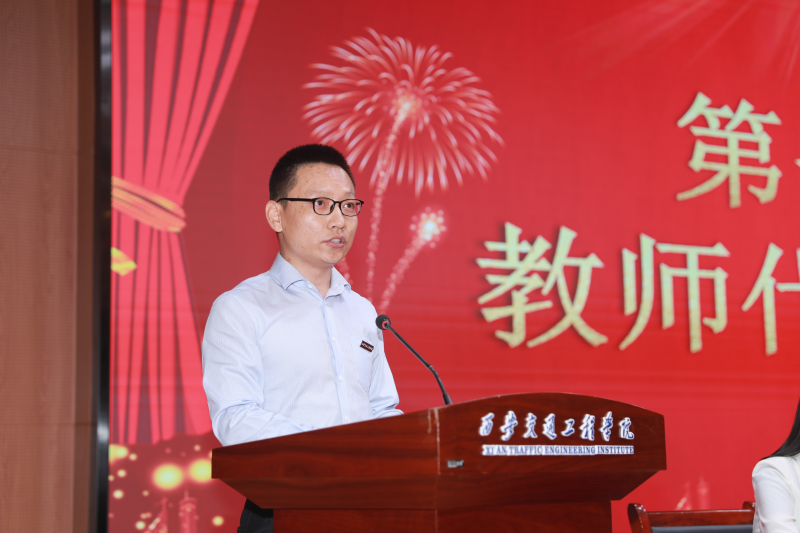 随后,教师代表赵伟副教授上台发言。他表示,一支积极进取、和谐凝聚的教师队伍是一所学校蓬勃发展的动力与源泉。要继续秉承“学高为师,身正为范”的职业操守,以更加饱满的热情、更加严谨的态度、更加扎实的作风,投身到教育教学和科研创新的实践中去。为实现“迎评、创硕、争一流”的阶段目标,探索并实践更加高效的教学方法,努力培养具有创新精神和实践能力的应用型高素质人才。