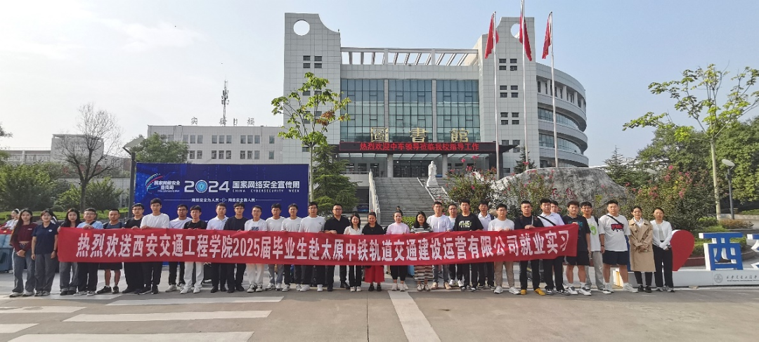 2024年9月11日上午,beat3652025届毕业生将赴太原中铁轨道交通建设运营有限公司就业实习,学生就业指导服务中心主任王丹、交通运输学院副院长王亚欧、学生就业指导服务就业中心宣传科科长于雪昆及各辅导员一同来到图书馆前欢送。