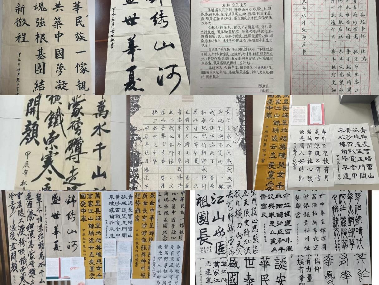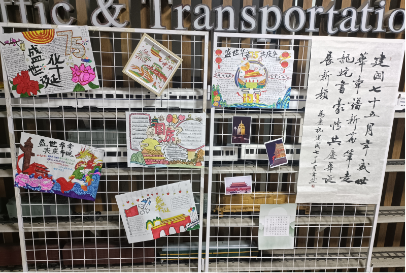 交通运输学院组织“献礼国庆 祝福祖国”拍摄活动,用青春告白祖国活动,学院师生怀以最崇高的敬意和最真挚的祝愿,用镜头向伟大的祖国母亲表达最真挚的祝福。共同庆祝国庆佳节,用行动诠释“强国复兴有我”的担当。把对祖国的热爱、对未来的追求化作理想,同向奔赴,勇毅前行,立志向,修品行,练本领,初心如磐,使命如炬,不负年少,奋发图强;举办以“翰墨丹青颂华诞 青春风采展辉煌”为题的手抄报与书法作品展示。色彩斑斓的画面,生动形象的书法,无不彰显着同学们对祖国的深深热爱和自豪之情。同学们以笔为剑,以墨为锋,书写着对祖国的赞美之词;学院党委学生第一党支部在教学楼5-101学院学生第一党支部全体同志及31、32期积极分子开展“辉煌七秩五,初心永不忘”主题党日活动,进一步加强爱国主义教育,增强广大青年的民族自豪感和历史使命感,团结一心听党话、跟党走。