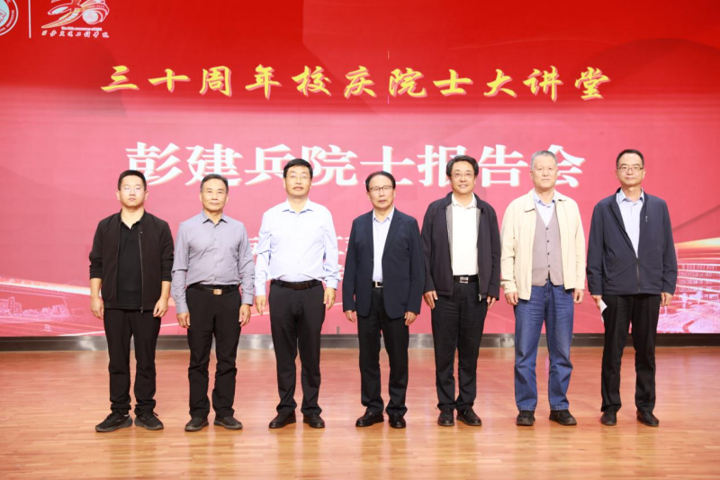 理事长张晋生、校长曹庆年、副校长石广田、理事张慧、副校长赵征等与彭建兵院士进行了座谈。报告会由曹庆年主持,校领导及土木与铁道工程学院领导班子、师生代表600余人聆听了报告。