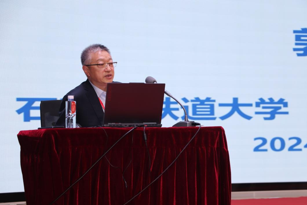 副校长石广田在致辞中对各位专家学者表示热烈欢迎,他指出,在轨道交通技术迅猛发展的今天,以及新质生产力对专业人才的迫切需求下,我们有必要深化新工科教育改革,促进产教深度融合,致力于提高轨道交通领域的人才培养质量。