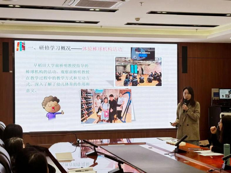 曹曦文对教师团暑期赴日本访学交流的基本情况进行介绍,本次访学交流教师们深入日本保育园、棒球机构等地,并与早稻田大学教授以及当地学前教育工作者进行了深入交流与探讨,通过实地参与和观摩,beat365教师对日本教育体系中幼儿身心健康发展、体育活动、自然教育等方面的独特理念和实践建立了全面了解。