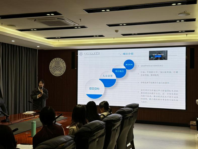 郝柯羡着重比较了日本学前教育与中国学前教育的特点,未来应当注重学前教育与社会教育的融合,完善相关制度,重视幼儿身心方面的发展;王孟通过观察幼儿的日常表现和兴趣爱好,适时调整课程内容和教学方法,进一步促进了对瑞吉欧教育理念的认识,也更加确信坚定终身学习的理念,通过观察日本幼儿种植活动,也再次对我国教育家陈鹤琴“活教育”理念有了深刻的认识;陈福珍就日本幼儿体育教育、自然教育和室内环创等方面进行汇报,特别说明运动、技能等对于幼儿身心健康成长的重要性,坚定了其将体育融入幼儿教育实践的信念;时晨露主要分享日本保育园的教育理念:即注重高质量陪伴和适宜性互动;在游戏中观察、发现、唤醒、保护、支持对孩子个性化兴趣的张扬、动手探索能力的培养等方面提供了多元化的支持,强调了“授人以魚不如授人以漁”的教育理念;张萍从“早稻田大学的开放精神”、“日本与中国学前教育模式的比较”、“教育理念的融合与共进”三个方面进行了详细汇报,提出应该尊重和欣赏不同教育文化,相互学习,共同发展,创造出更适合孩子成长的学前教育模式。