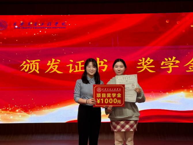 国际合作与交流处负责人曹曦文为优秀学生代表颁发证书、奖学金