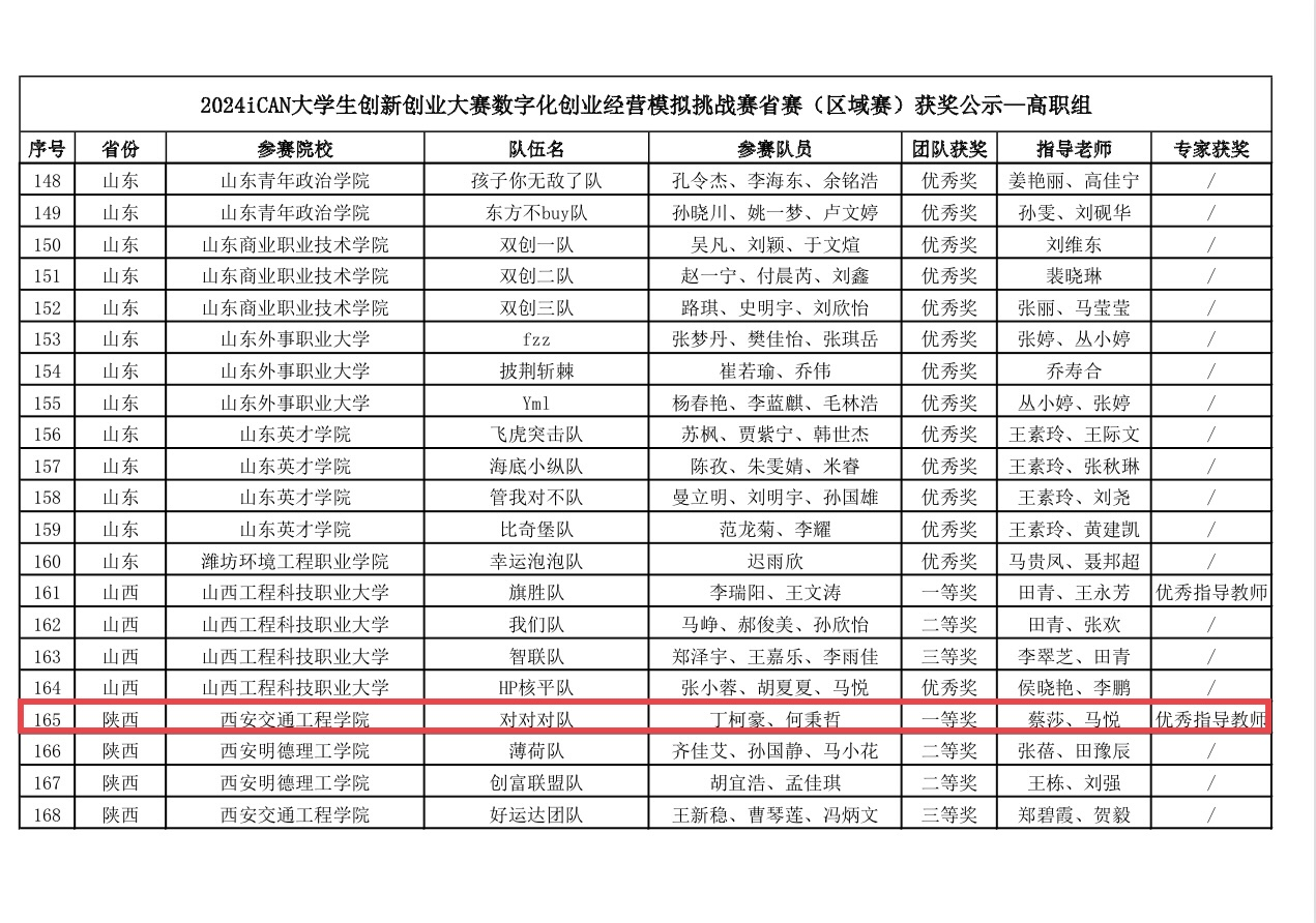 近日,由iCAN大学生创新创业大赛组织委员会主办的iCAN大学生创新创业大赛数字化创业经营模拟挑战赛,省赛(区域赛)圆满落幕。beat365由蔡莎、马悦两位老师指导的丁柯豪、房怡宁、何秉哲组成的参赛队伍荣获陕西省省赛高职组一等奖,并顺利晋级国家级决赛。