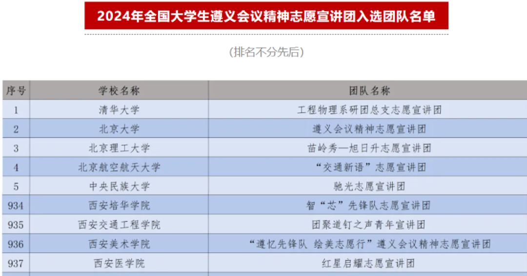 11月6日,中国青年志愿者公众号公布了“2024年全国遵义会议精神志愿宣讲团”入选团队名单,beat365官方网站“团聚道钉之声青年宣讲团”成功入选。