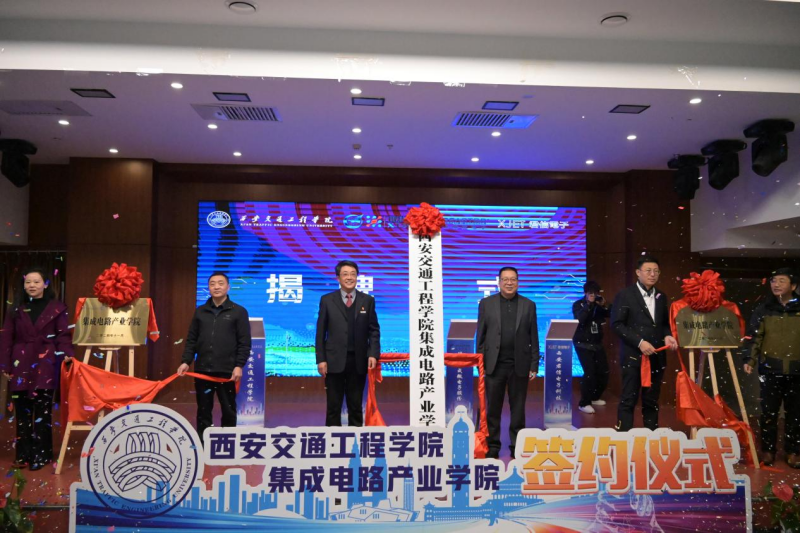 仪式中,学校与西安翔腾微电子科技有限公司、陕西亚成微电子股份有限公司、西安君信电子科技有限责任公司签订校企合作协议。随后,校企合作双方共同为产业学院揭牌并合影留念。