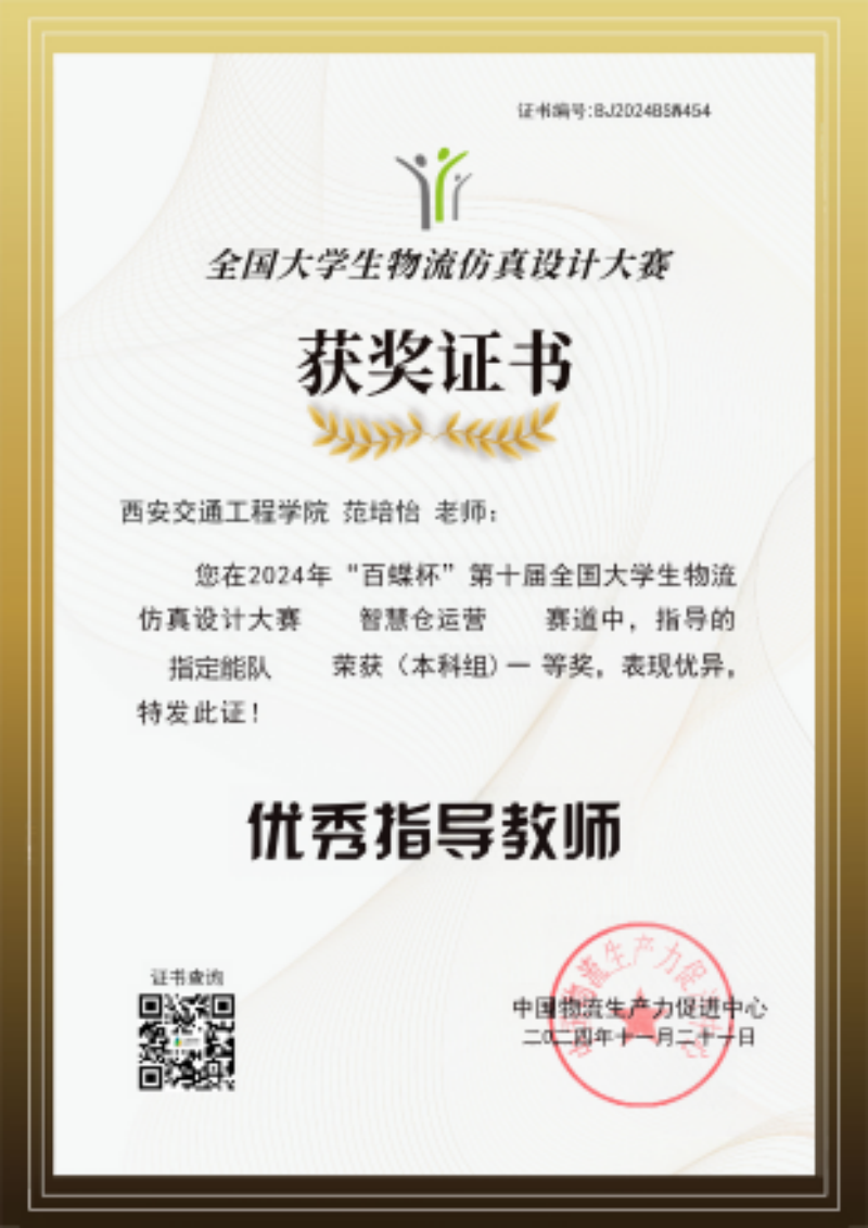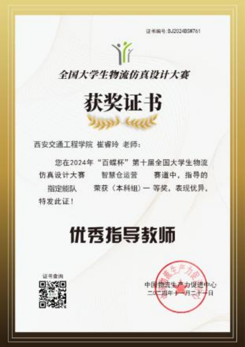 11月25日,2024年“百蝶杯”第十届全国大学生物流仿真设计大赛圆满落幕。beat365物流管理专业学生凭借出色设计荣获一等奖、三等奖的优异成绩。其中物流管理2203班崔世琴、邱学谦和张婉婷获(本科组)智慧仓运营赛道一等奖,物流管理2203班罗佳熠、相怡宁和杨一帆获(本科组)物流系统规划设计赛道三等奖,物流管理教师崔睿玲、范培怡获优秀指导教师证书。