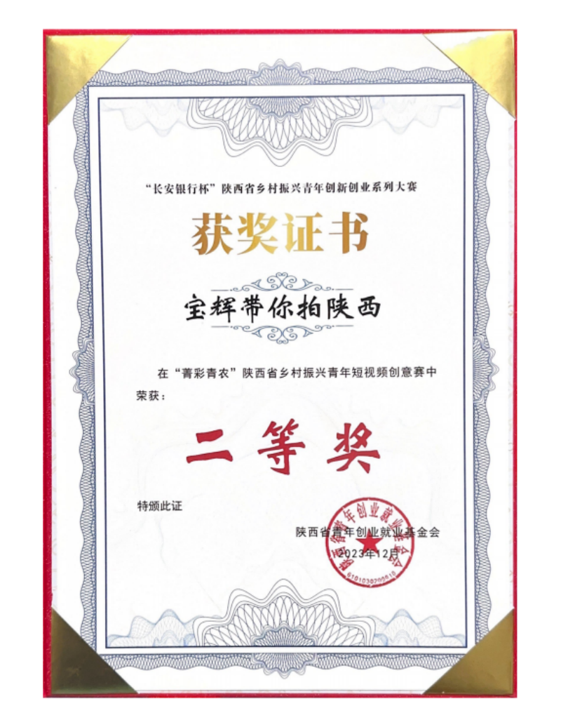 “宝辉带你拍陕西”荣获陕西省乡村振兴青年创新创业系列大赛二等奖