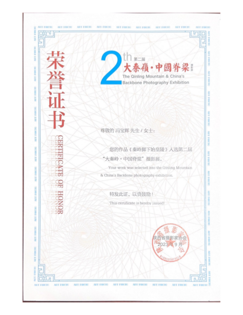 《秦岭脚下始皇陵》入选第二届“大秦岭·中国脊梁”摄影展
