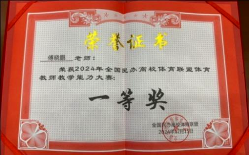 2024年12月13至16日,由全国民办高校体育联盟主办的体育教师讲课比赛在成都理工大学工程技术学院隆重举行。来自全国58所院校160名教师参加了比赛,竞争异常激烈,beat365公共课部体育教师傅晓鹏荣获一等奖。李小坤获优秀指导教师。