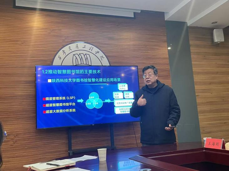 为进一步提高图书馆馆员们的业务素质与能力,12月20日上午,图书馆特邀陕西科技大学图书馆(档案馆)馆长、经济与管理学院教授,硕士研究生导师王海刚教授在图书馆西侧会议室为全体馆员作了题为“技术推动智慧图书馆发展,AI赋能图书馆馆员能力提升”的专题报告。王海刚馆长曾任陕西科技大学管理学院经济系主任、管理学院副院长、教务处副处长。现兼任陕西省工商管理类专业教学指导委员会委员、陕西高校图书情报工作委员会常务委员、陕西省图书馆学会常务理事、陕西省社会科学信息学会常务理事。国家社科基金评审鉴定入库专家、教育部学位中心论文评审入库专家、西安市科技局入库专家。九三学社陕西省第十四届委员会委员,九三学社陕西省教育文化委员会副主任,西安市未央区政协委员。培训会由黄晓燕副馆长主持。图书馆各部室主任及全体馆员参加了此次培训会。