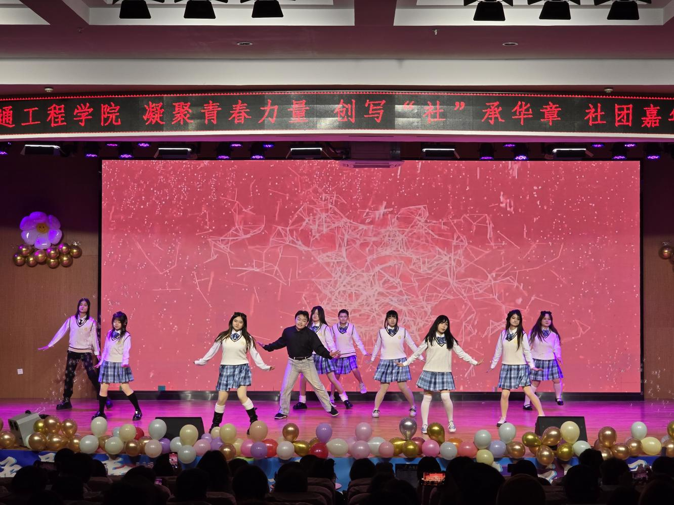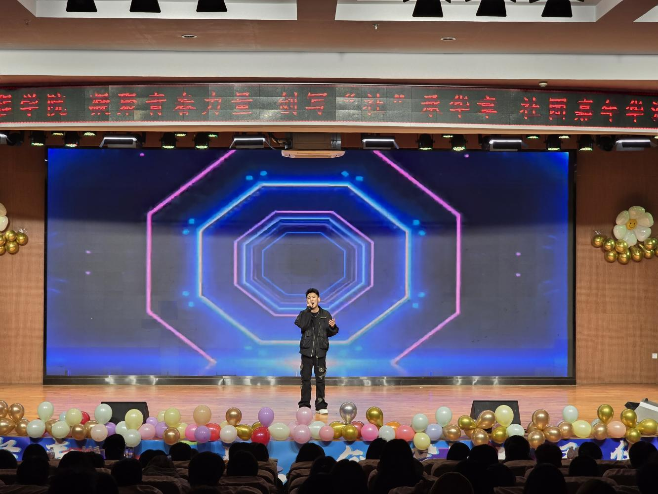 晚会在器乐演奏的《特斯河之赞》中拉开帷幕,激情的音符点燃全场。百灵鸟文艺社同学带来的歌曲《最美的太阳》,温柔细腻的情感,吟唱着美好生活,向人间传达温情;社团管理部同学们带来的舞蹈《夺目》舞者们灵动的舞姿与动感的音乐完美融合,展现了青春的活力与激情;嘻哈公社同学们带来的《终结比赛》以动感的节奏和激情四溢的表演,引领大家感受着无限活力与热情;《神奇的西藏》一场洋溢着浓郁神秘气息的西藏歌伴舞,直击心灵的视听洗礼,仿若开启了通往圣洁高原的奇幻之旅;一部别出心裁的小品《白雪公主和七个大高个》横空出世,表演者凭借其脑洞大开的剧情、精湛到位的表演,为观众们驱散生活疲惫,带来一场酣畅淋漓的欢乐风暴;丁杰明同学演唱的《不为人知的秘密》鼓励大家释放内心的自我,追求真实的自我表达;90NT街舞社的同学们用他们潇洒利落的舞姿、充满力量的节奏将《Locking pro》完美演绎;百灵鸟文艺社带来的《直到世界尽头》承载着无数人青春梦想与热血激情,重燃了大家对往昔岁月的炽热情怀。动漫社社员更是将晚会气氛推向了高潮,宅舞表演活力四射,舞者们衣袂飘飘间仿佛穿越时空,将古典与现代的美巧妙结合,让观众沉浸在别样的二次元风情之中;《武墨华章》表演者充满热血与激情,出手行云流水、刚劲有力,展示华夏大国风采;旋律悠扬,舞姿翩翩,舞之韵民族社同学们带来的古典舞《小城谣》表演者们笑靥如花,身姿曼妙,为我们展示了明媚的自信和优秀的舞姿;张桂翔、陈佳宝同学带来的rap《别非要逼我大声说出来》为观众们带来一场视觉与心灵的盛宴;爵士舞《无畏》轻盈的舞步优雅地打着旋儿激情澎湃的跃动和旋转冲破时空的束缚感受灵魂深处的震撼;难忘今宵,告别今宵,在合唱《星辰大海》的欢乐的歌声中,本次晚会缓缓落下帷幕。