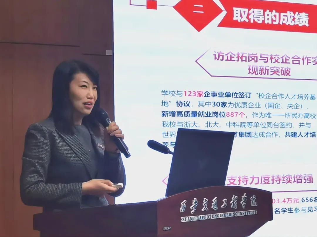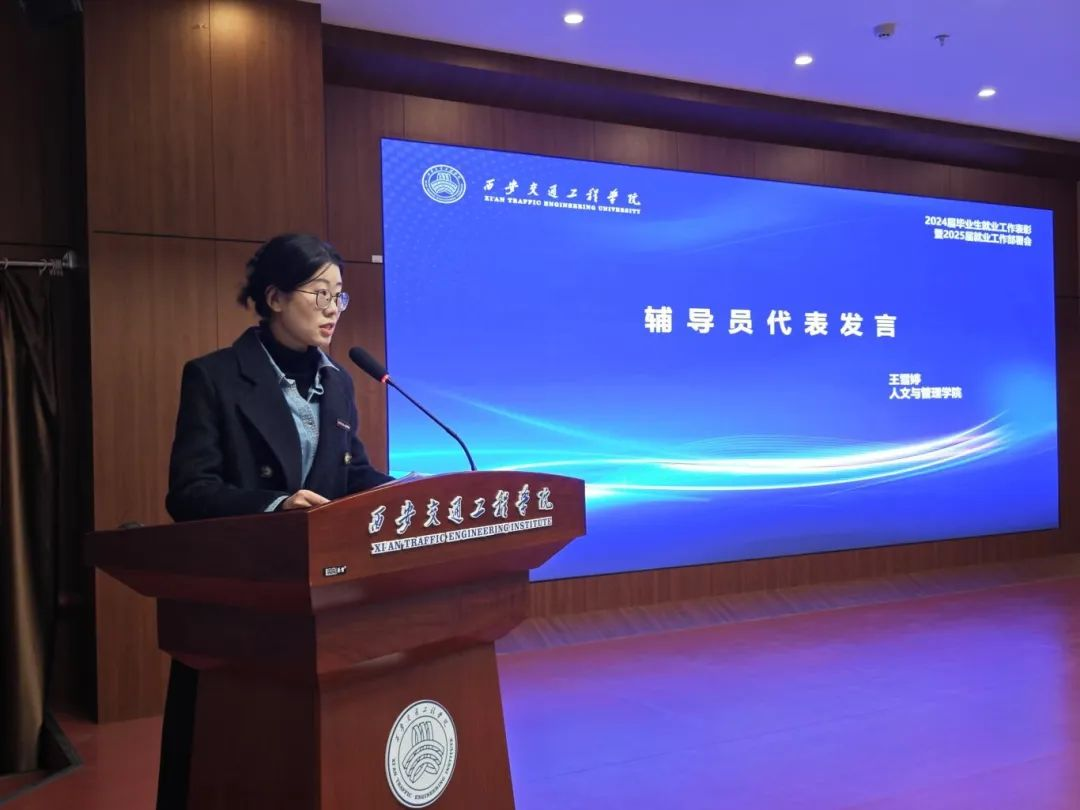 副校长徐炜对各位领导、同事及奋战在一线的老师们表达了诚挚感谢,回顾了2024年就业工作的总体情况并对2025年就业工作做出展望。她强调,作为陕西唯一一所民办院校,学校不断密切校企合作、深入推进产教融合,屡次实现了学校就业工作的新突破。她指出,2025年就业工作部署要结合全国教育大会、教育部2025届毕业生工作要求、陕西省2025届毕业生就业工作会议要求展开,并提出就业“四要”的具体工作要求。一是要用好政策性岗位,充分发挥政策性的引领作用拓展就业渠道;二是要健全就业指导服务体系,统筹好困难毕业生帮扶;三是要完善评价机制,探索教育改革,推进招培联动机制。四是要求全校同心促就业,形成人人关心就业、人人支持就业、人人参与就业的良好格局。