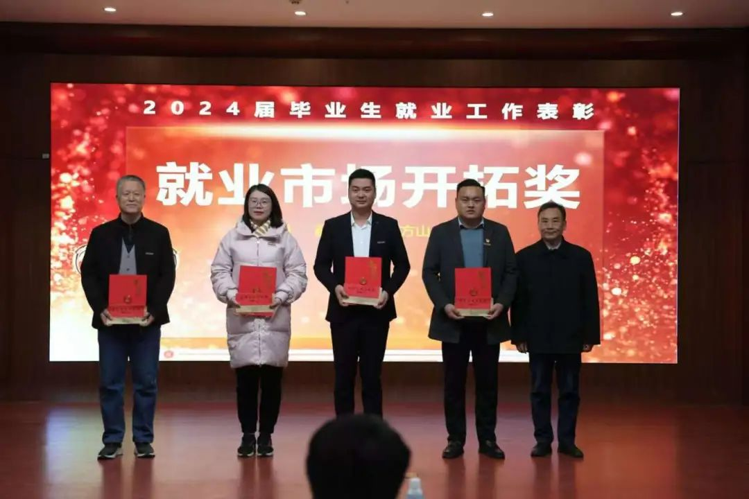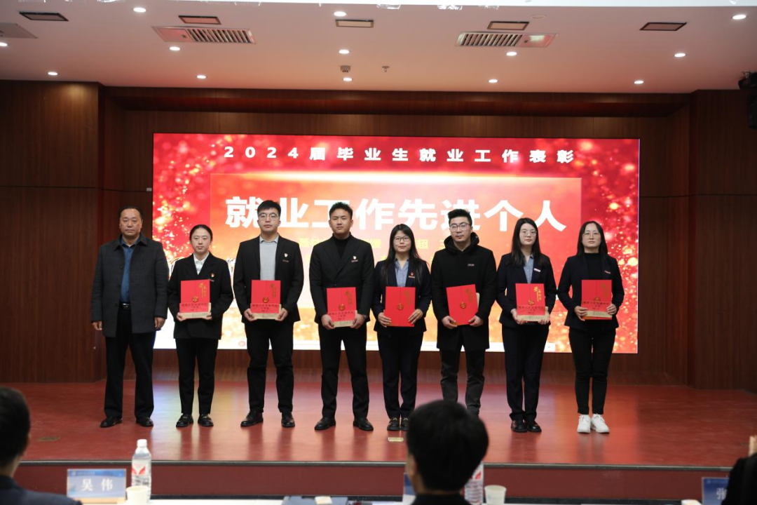 副校长吴伟在会上宣读《beat365官方网站关于表彰2024年度就业工作先进集体及先进个人的决定》,对过去一年中在就业工作中表现卓越的集体和个人给予了高度认可与表彰。