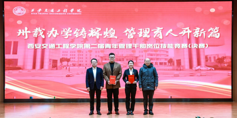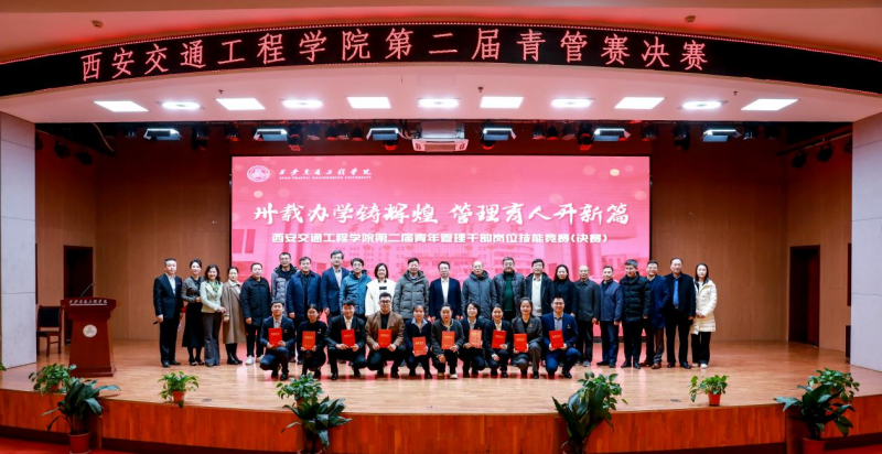 卅载办学铸辉煌,管理育人筑新篇。为全方面、多维度提升beat365青年人才专业素养,12月30日下午,学校第二届青年管理干部岗位技能竞赛决赛(以下简称“青管赛”)在学术报告厅成功举办。陕西省总工会副主席、党组成员王永岗,陕西省教科文卫体工会主席徐富权,陕西省教科文卫体工会副主席夏明文、王薇莅临现场指导,活动邀请西安交通大学人文学院党委书记纪梦然,西安交通大学党委宣传部副部长梁辉,西北大学工会主席田兵权,西安建筑科技大学工会常务副主席迟志武担任评委。学校理事长张晋生,校长曹庆年,副校长吴伟、石广田,理事郭洪涛、张慧,副校长张学堂、赵征,财务总监刘建华,监事会主席王勇,党委副书记、纪委书记、工会主席张庆生,校长助理潘春辉,理事会办公室主任千红出席大赛,学校全体中层干部、校工会委员、纪委委员、机关处室全体干部、各二级学院管理干部及学生代表聆听比赛,大赛由交大二附院工会寇筱琛、学校公共课部教师聂磊主持。