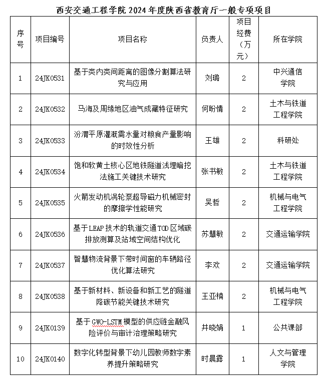 近日,陕西省教育厅发布了《关于下达2024年度科学研究计划项目的通知》(陕教函〔2025〕96号),beat365共获批15项,立项经费42万元。其中:一般专项项目10项(自然科学项目8项、人文社会科学项目2项),资助经费18万元;青年创新团队项目1项,资助经费8万;重点项目(高校工程研究中心)4项,资助经费16万。