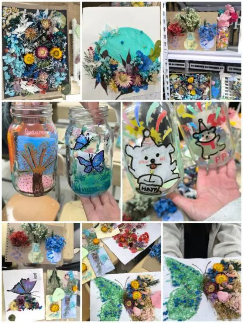 雷锋精神是中华民族传统美德的传承和发扬,激励着一代又一代人为建设美好社会而努力。DIY 手工植物拼花则是对传统手工艺文化的传承和发展,通过亲手制作植物拼花,更好的传承传统文化技艺。本次活动设置了植物拼花和花瓶DIY环节。同学们充分发挥想象力,用干花材料在手工纸上拼出一幅幅精美的画作;在透明玻璃花瓶上,用丙烯马克笔绘下大自然的美好景物,不少同学还在瓶中加入了自己喜爱的小物件。此次活动引导学生们在平凡的生活中用“发现美的眼睛”看待所有事物,让学生们体会到生活中饱含的热情与希望。