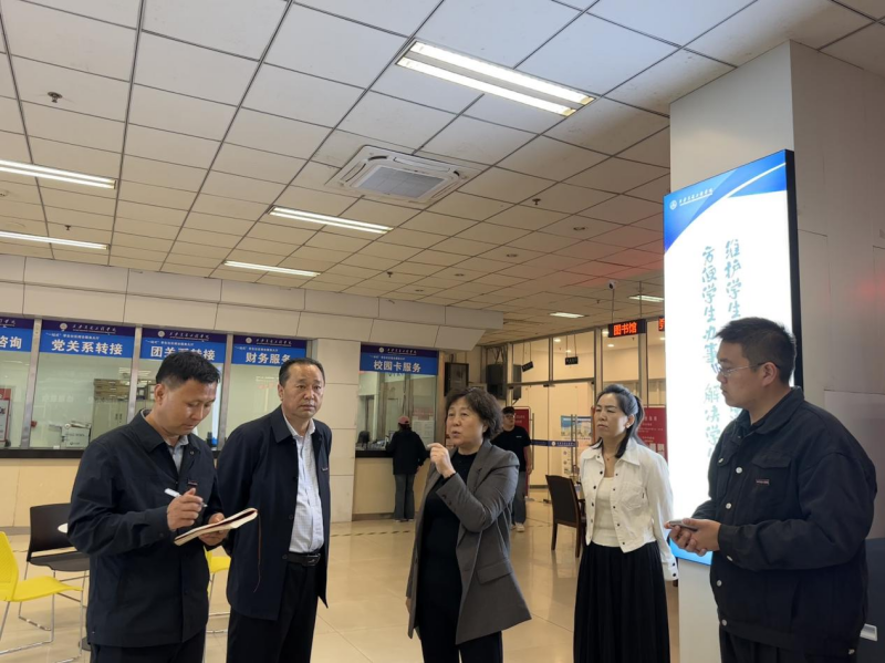 在检查过程中,李萍一行详细查看了服务大厅的整体布局、功能分区及设施配备情况。大厅内,学生事务办理区、休闲交流区、自助服务终端区等区域规划科学,涵盖了学籍管理、奖助咨询、就业指导、后勤报修等20余项高频服务事项,真正实现了“一站式受理、一条龙服务”。李萍书仔细询问服务流程优化、信息化平台运行等情况,对服务大厅“以学生为中心”的设计理念和已取得的阶段性成果给予充分肯定。随后走访各公寓楼的“一站式”学生社区,检查各公寓社区工作室及党员模范宿舍,详细了解总体布局与具体功能,现场听取公寓负责人对社区的特色亮点及工作成果的汇报。