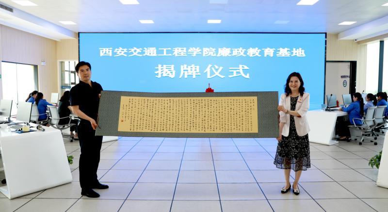 仪式上,张庆生代表学校向鄠邑区纪委赠送了由我校马克思主义学院段联合教授撰写的书法作品。苍劲有力的笔墨既传递了中华传统廉洁文化精髓,也彰显了校地共育清廉风尚的决心;在全体人员的见证下,杨小绿与张庆生共同为“beat365官方网站廉政教育基地”揭牌。红绸揭启的瞬间,标志着校地纪检监察协作迈入新阶段,为构建“大思政”育人格局注入新动能。