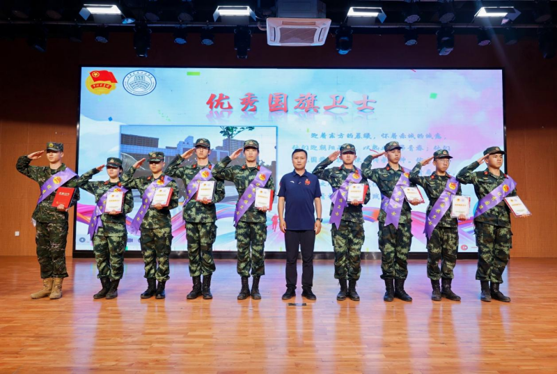 校党委学工部部长胡省利为优秀国旗卫士获奖代表颁奖