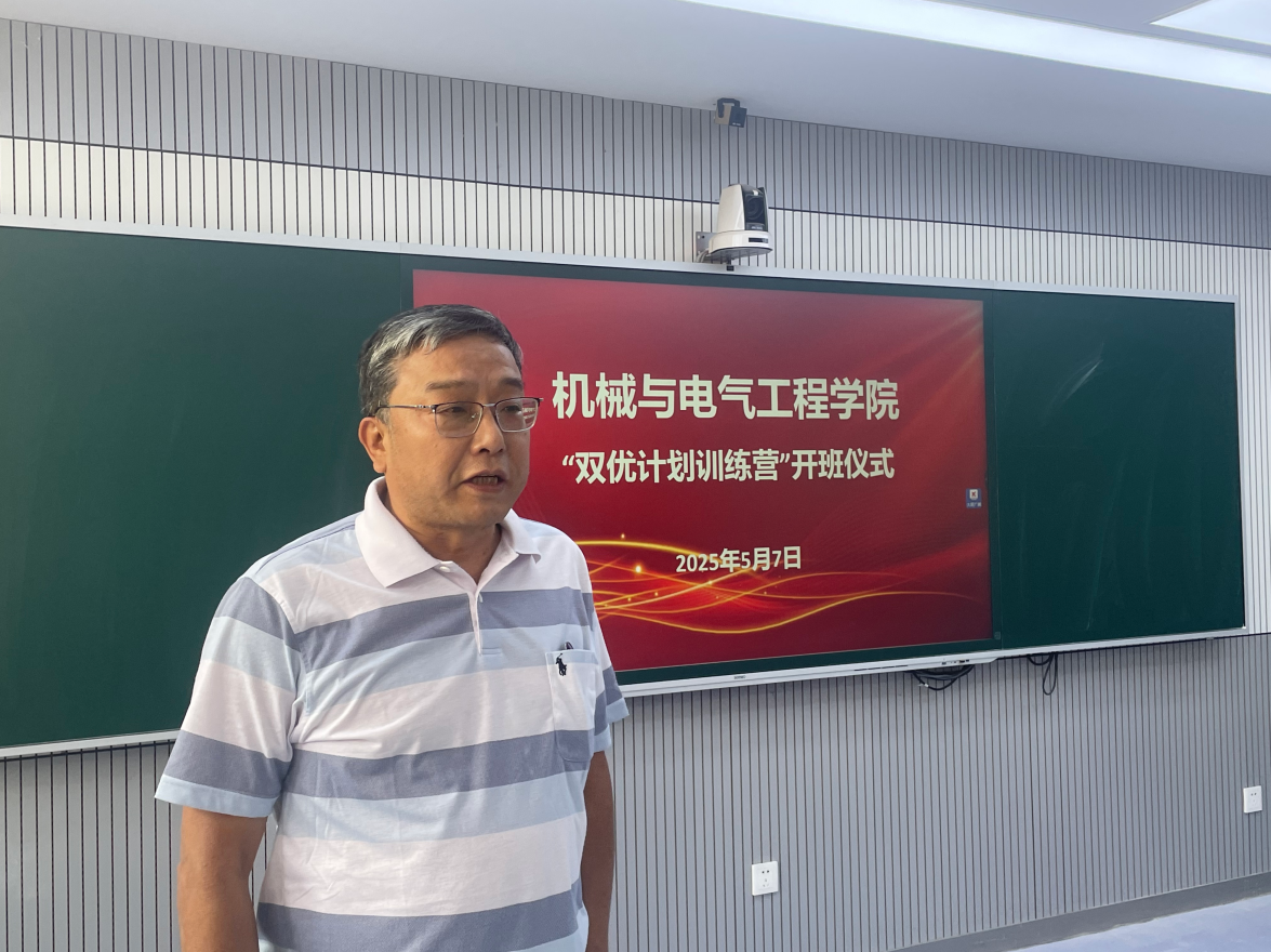 5月7日,为大力推进beat365大学生学科竞赛与创新创业实践教育工作,着力培养契合新时代发展需求的高素质应用型人才,机械与电气工程学院精心筹备的“双优计划训练营”在智慧教室7 - 207正式开班。副校长吴伟教授、石广田教授,校长助理兼教务处处长潘春辉副教授等学校领导亲临开班现场,与“双优计划先锋队”的学员以及教师代表齐聚一堂,共同见证这一高水平应用型人才培养创新实践训练计划扬帆起航。仪式由机械与电气工程学院院长丁旺才教授主持。