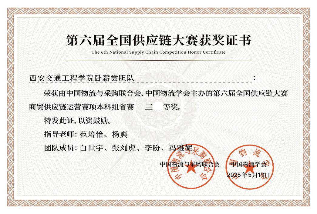 各参赛小组在专业教师的精心指导下,系统地梳理了供应链管理的理论知识,并通过模拟实战不断优化方案。在比赛中,他们灵活运用大数据分析等工具,结合赛事背景信息与现实情况,高效制定了供应链协同策略。最终凭借稳健的运营能力和创新的解决思维,成功赢得比赛,为学院再添殊荣。此次获奖是学院深化产教融合、推进“以赛促学、以赛促教”育人模式的生动体现。不仅彰显了人文与管理学院物流管理教研室的专业教学实力,也为进一步推动学科建设、提升学生创新能力注入新动力。