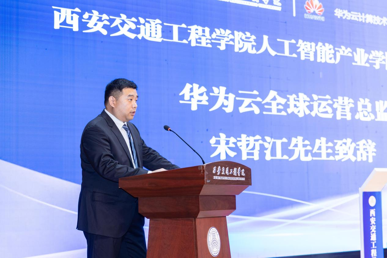 华为云全球运营总监宋哲江在致辞中表示,校企双方以国家数字经济发展及教育数字化战略为导向,推动 “四链” 深度融合。合作聚焦课程体系重构、实训平台赋能、产业资源联动三大核心。未来双方将分阶段建设国产化课程、AI 实训基地及国家级产业学院,探索校企人才流动机制,以赛促学、以证赋能,打造区域产教融合标杆,为数字中国培养复合型 AI 人才。并对西交院学子们寄予厚望,希望基于双方合作,让学生“在校即实战,毕业即就业”。