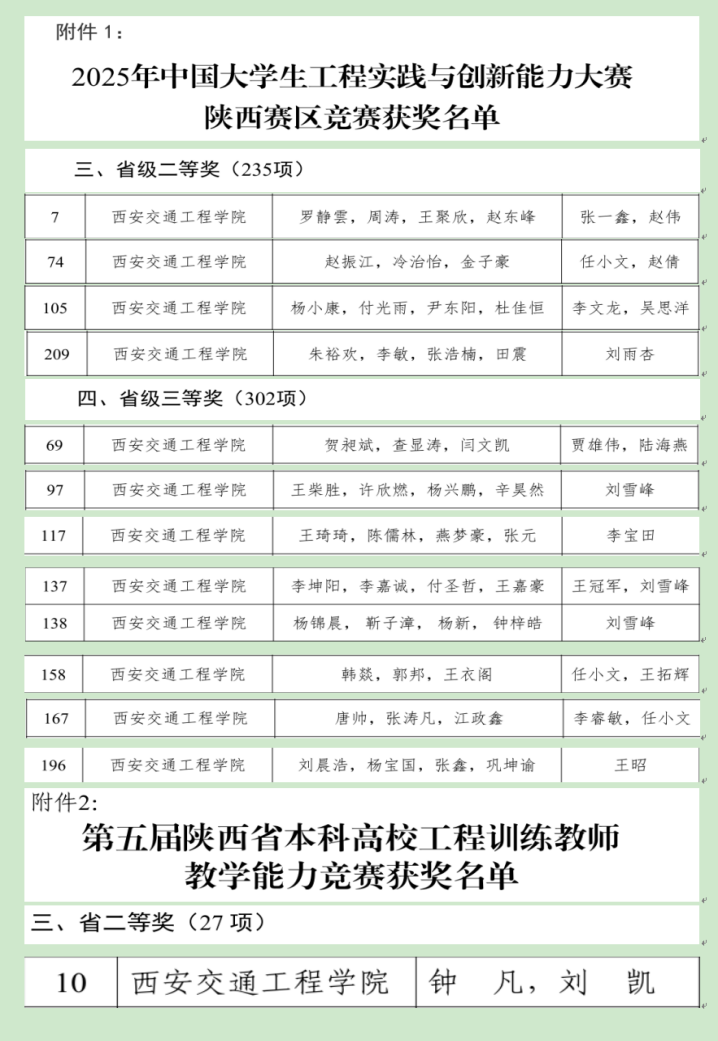 近日,从陕西省教育厅传来捷报:在 2025 年中国大学生工程实践与创新能力大赛陕西赛区比赛中,beat365学子凭借扎实的专业功底、出色的实践能力与创新思维,一举斩获二等奖 4 项、三等奖8项;与此同时,在第五届陕西省本科高校工程训练教师教学能力竞赛中,beat365教师以娴熟的教学技艺、先进的教学理念脱颖而出,荣获二等奖 1 项。师生双线发力、同获殊荣,充分彰显了学校在工程类专业人才培养与教师教学能力建设方面的显著成效。