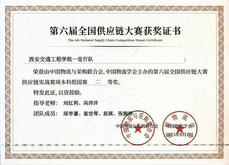 物流管理教研室始终将学科竞赛作为提升学生专业实践能力和创新精神的重要抓手,此次获奖是物流管理专业教学成果的一次生动体现。物流管理专业将以此次赛事为契机,进一步深化物流与供应链领域的产教融合,不断优化人才培养方案,为培养更多适应行业发展需求的高素质应用型人才而不懈努力。