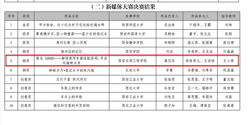 获奖作品《德龙X6000——解锁商用车高性能密码,开启运输新未来》聚焦陕汽重卡旗舰车型德龙X6000。创作团队通过精心制作的高燃视频混剪,运用极具冲击力的视听语言,生动展现了该重卡在多种复杂运输场景下的强劲动力、稳定性能与卓越品质。作品以直观而富有感染力的形式,成功“解码”了商用车的“高性能密码”,赢得了评委的高度认可,彰显了交院学子敏锐的行业洞察力与出色的创新实践能力。