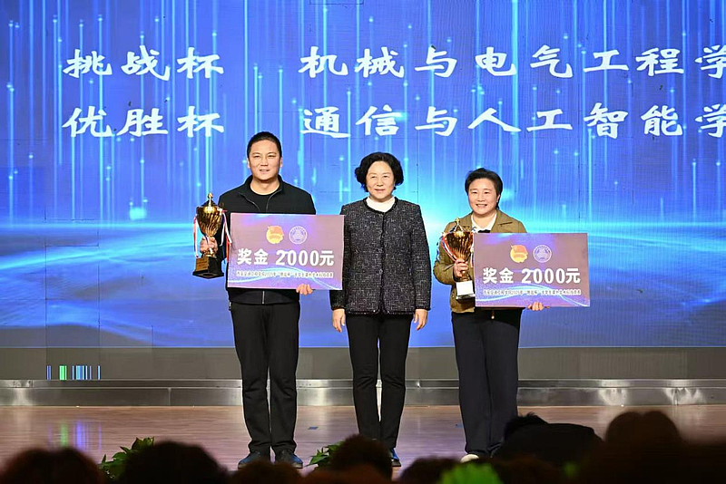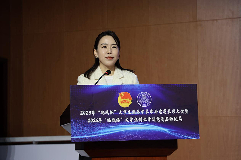 10月21日下午,校团委在学术报告厅成功举办2025年“挑战杯”大学生课外学术科技作品竞赛总结表彰暨2026年“挑战杯”大学生创业计划竞赛启动仪式。校党委书记李萍,副校长吴伟、王勇,校长助理兼教务处处长潘春辉,理事会办公室主任兼创新创业学院院长千红出席活动。学校相关职能部门负责人、各学院党委书记、主管竞赛工作副院长、团总支书记、教师代表及学生代表共同参加活动,仪式由团委书记王小英主持。