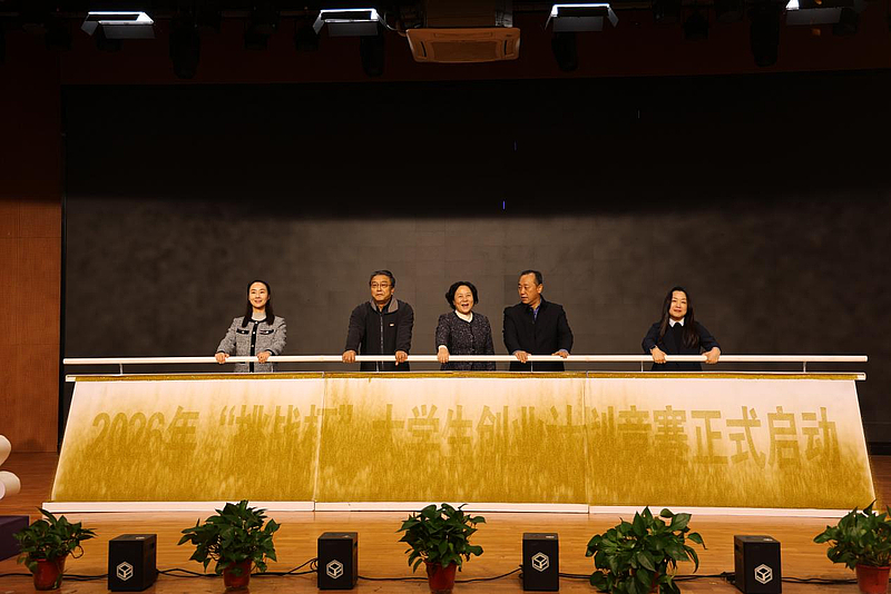 在全体与会人员的热切期待中,校领导共同启动了2026年大学生创业计划竞赛,标志着新一届“挑战杯”征程正式启航。
