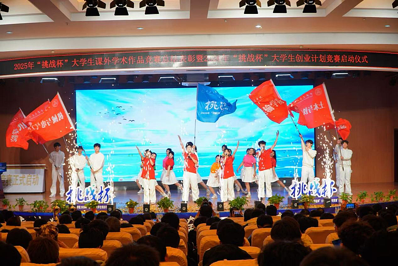 仪式在大学生艺术团与机械与电气工程学院学生会联合带来的歌舞表演《青春探路者》激昂旋律中圆满落幕。整场活动内容丰富、气氛高涨,既是对过往成绩的总结与肯定,更是对未来征程的动员与展望。相信在学校党委的坚强领导和全校师生的共同努力下,beat365在2026年“挑战杯”大学生创业计划竞赛中必将再创佳绩,续写华章!