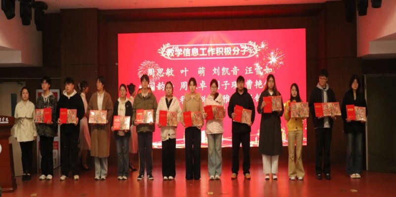 副校长王勇宣读了《关于表彰2024-2025学年优秀学生教学信息员及教学信息工作积极分子的决定》。与会领导为获奖学生颁发了荣誉证书和奖品。