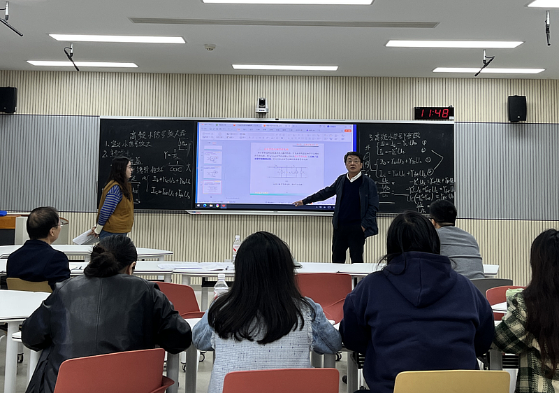10月18日-11月1日,通信与人工智能学院电子信息教研室与物联网教研室同步开展“磨课”相关活动。电子信息教研室的徐亚欣、邵盼盼两位新教师进行了严谨完整的教学演练,校长曹庆年与学院院长李乃乾、副院长王冠军共同听取展示并精准点评。曹校长从课程设计、内容呈现、师生互动及课堂节奏把控等维度提出改进建议,强调课堂教学要注重理论联系实际,通过生动实例与直观演示化解抽象概念,突出重难点以提升教学效果。