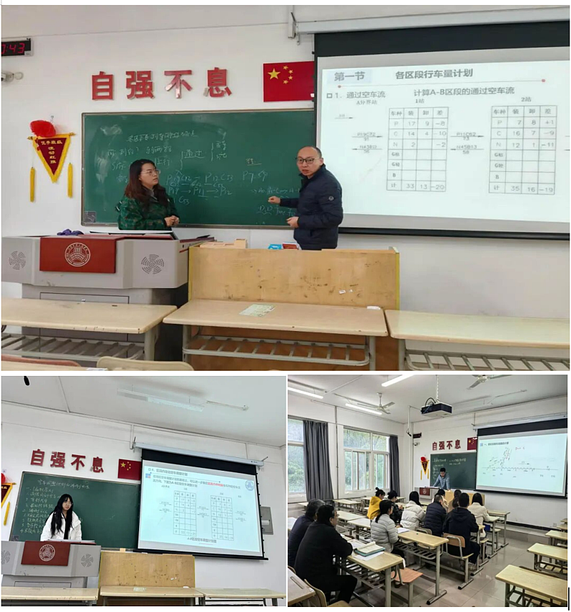 10月17日-11月8日,交通运输学院行车教研室组织《铁路运输调度统计与分析》课程“磨课”研讨,校长吴伟,院长崔炳谋、部分学院领导共同参与指导。叶杉、武远萍、陈永钊三位教师围绕“空车调整计划”等核心内容开展教学展示,运用案例拆解、任务驱动等方法展现专业功底,校院领导从内容呈现、师生互动、教具使用等维度提出改进建议,强调课堂教学需突出重难点、强化理论与实际结合。行车教研室针对《高速铁路运输组织》课程开展“精准滴灌式”专项磨课,教研室主任张海领衔高雪、王代芳等四位教师深度研讨。教师们通过三维架构教学、京沪高铁运营数据具象化、“可视化+案例化”等创新形式,聚焦重难点突破与职业素养培育,形成的重难点解析手册、案例资源库等成果将直接应用于教学改革。次日组织召开专题研讨会,邀请三位行业及高校专家与校内教师展开深度交流。正高级工程师张佳博士强调:“高校需加强与行业龙头企业的技术联动,将真实项目案例融入课堂教学,培养学生解决复杂工程问题的能力。”陕西国防工业职业技术学院徐明霞教授从交通规划视角出发,介绍了该校“校政企协同育人”模式,通过共建乡村振兴实践基地、联合申报省级科研课题等方式,实现教学与地方发展的深度对接。她指出:“交通规划人才培养需紧扣国家战略,强化跨学科能力与数字化工具应用。”西安航空学院吴玲副教授展示了“理论+实践”教学闭环设计成果。廖世勇副院长在总结中表示,此次会议为学院专业建设及课程建设提供了新思路。11月8日,交通运输学院客运教研室在教研室主任胡小敏老师的牵头组织下,聚焦《集装箱运输与多式集装联运》课程,开展了一场针对性强、内容扎实的专题磨课活动,教研室全体教师参与了本次教学研讨。