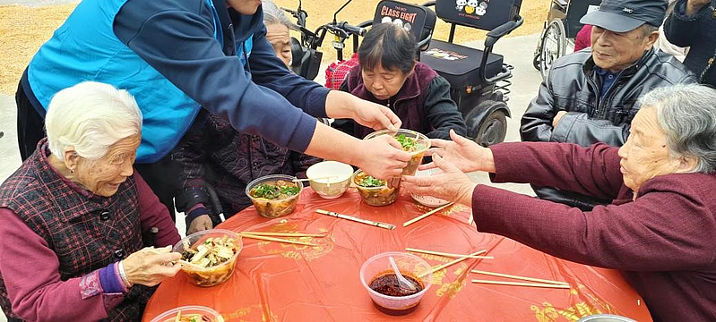 最后,志愿者提前抵达黄埔村活动现场开展物资搬运与场地清理,快速搭建活动场景。用餐环节,志愿者为老人提供端饭送饼服务,围绕“老人过往生活经历”“校园新鲜事”展开深度交流,让饭菜香气与欢声笑语交融,营造温馨互动氛围。活动尾声,志愿者协同完成场地清洁、物资归还工作,并与村委会及老人合影留念,定格青年学子与乡村老年群体的真挚联结。