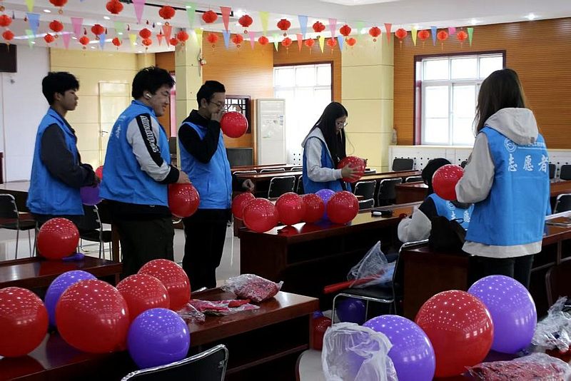 志愿者还在鄠邑区中心敬老院通过悬挂“重阳安康”红色标语、布置五彩气球与飘逸彩带,打造浓厚节日氛围,有效活跃院区环境。他们提前开展场地布置,为后续慰问与节目展演奠定基础;活动结束后,细致完成物料收纳与环境清洁,以实际行动让老年群体切实感受温暖。