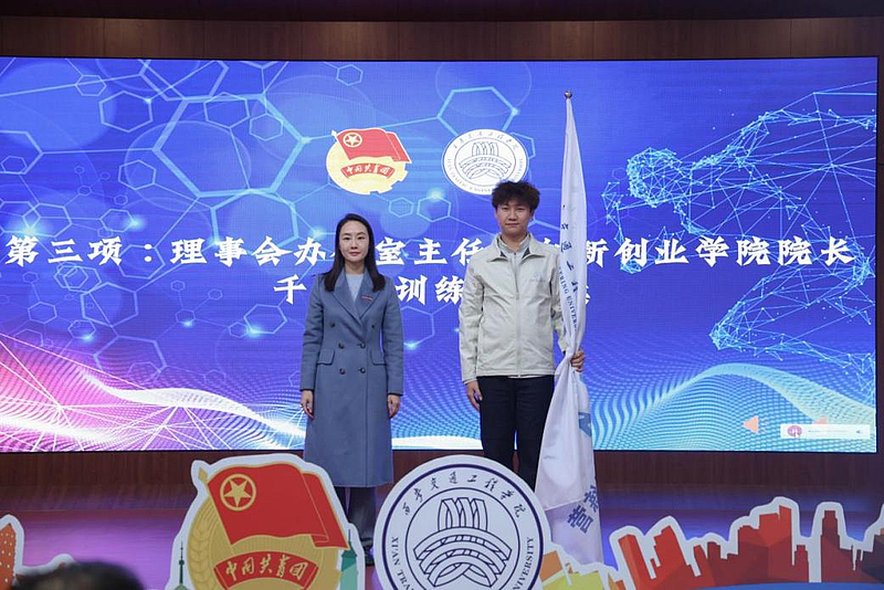 在激昂的乐曲声中,理事会办公室主任、创新创业学院院长千红庄重地将训练营营旗授予本期训练营。这面旗帜的传递,象征着创新创业精神的传承,也标志着一段充满挑战与收获的集训征程正式启航。