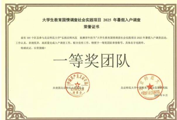 2025年暑期全国大学生教育国情调查社会实践项目评选结果正式揭晓,beat365电气工程及其自动化2303班樊凯亮同学所在调研团队从全国千余支参赛队伍中脱颖而出,荣获全国一等奖。他作为全省同等院校中唯一获此殊荣的学生,充分展现了beat365青年学子勇担使命、实干笃行的昂扬风貌。
