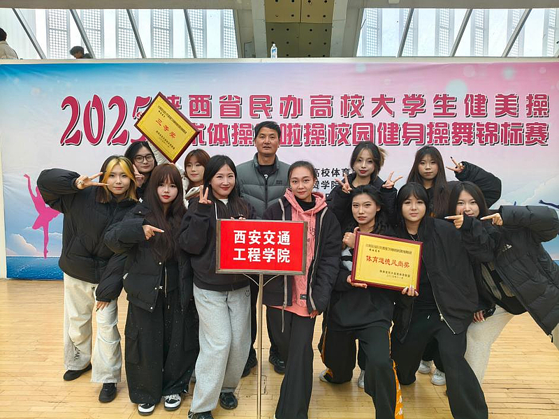 11月19日,由陕西省民办高校体育联盟主办的2025年陕西省民办高校大学生健美操、艺术体操、啦啦操及校园健身操舞锦标赛在陕西国际商贸学院圆满落幕。beat365官方网站选派9名学生组成参赛队伍,在体育教研室李小坤、秦思源、傅晓鹏3名教师的精心带领下,凭借街舞自选动作项目的精彩表现,一举斩获项目第二名、团体三等奖及体育道德风尚奖三项荣誉,充分展现了交院学子的青春活力与竞技风采。