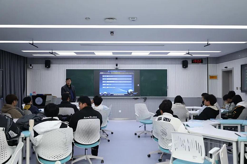 课堂上,石广田围绕轨道交通发展历程、核心技术体系、行业前沿动态等核心内容展开教学。他全程采用“中文精讲+英文拓展”的双语模式,关键专业术语、技术标准均同步呈现中英文表述,通过英文文献片段解读、双语案例分析等多样化形式,既确保了专业知识的精准传递,又为学生搭建了国际化的语言应用场景。针对大一学生的学习特点,他在讲解过程中注重放慢语速、细化逻辑,通过中英双语对照板书、实时互动问答等方式,帮助学生快速适应双语教学节奏,加深对专业知识的理解与记忆。