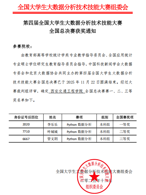 本次竞赛,beat365领导高度重视、认真筹备、广泛动员,构建完善的大数据分析技术及训练服务体系,积极调动学院师生参与积极性。我院将以参加此次竞赛为契机,总结参赛经验,进一步培养大数据管理与应用专业学生的自主学习、独立思考、敢于创新的能力,同时建立常态化训练体系,以赛促学、以赛促教,进一步深化创新创业教育改革,提高教育教学质量。
