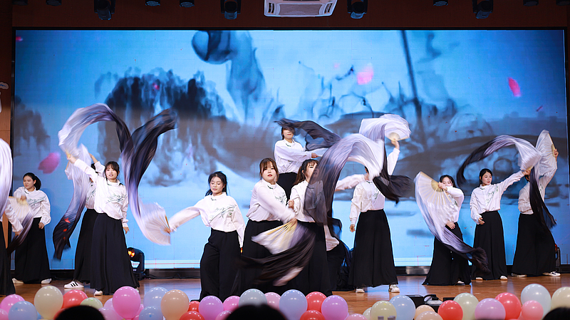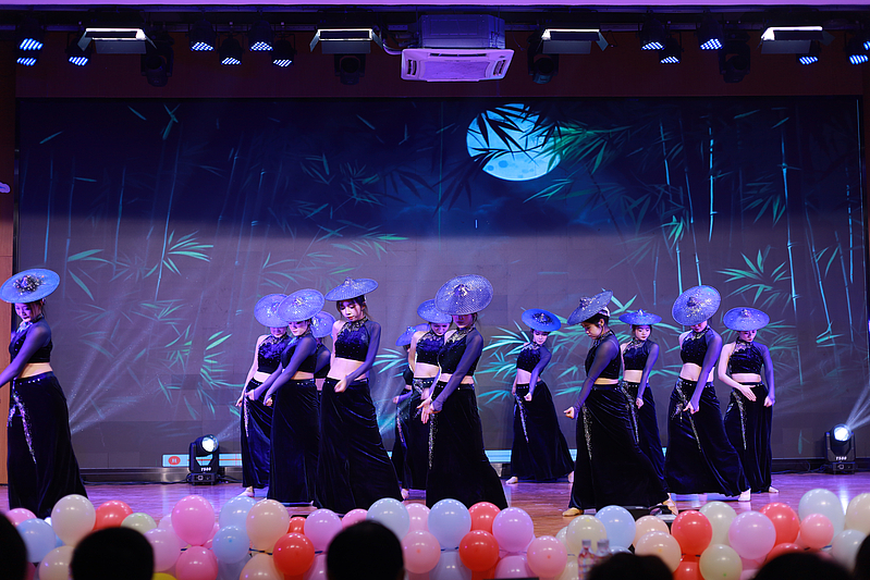 来自各二级学院的舞者们轮番登场,用肢体语言书写青春华章。机械与电气工程学院的现代舞《shooting star》如流星破空,炽热的光芒与无畏的力量点燃全场热情;人文与管理学院的民族舞《花腰傣韵》银饰叮当、裙裾飞扬,将西南边陲的独特风情娓娓道来;通信与人工智能学院的街舞《东方》刚柔并济,让沉静的东方意境与奔放的街头灵魂碰撞出奇妙火花;土木与铁道工程学院的现代舞《轨迹》,以利落舞姿演绎轨道交通人的速度、激情与担当,复刻出钢轨延伸的壮阔图景;现代技术学院的古典舞《一条大河》恢弘大气,用翻飞的云扇勾勒江河气韵,抒发深沉家国情怀;交通运输学院的《芙蓉如面柳如眉》水袖轻扬、步履娉婷,将大唐的端庄雅致与东方女子的温婉韵味展现得淋漓尽致。6支舞蹈各具特色,或激昂、或柔美、或厚重,为观众呈现了一场沉浸式的视听盛宴。