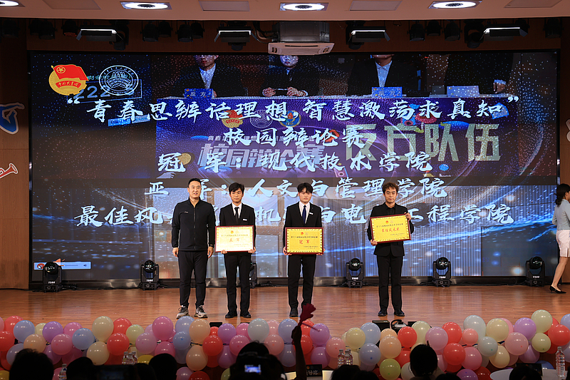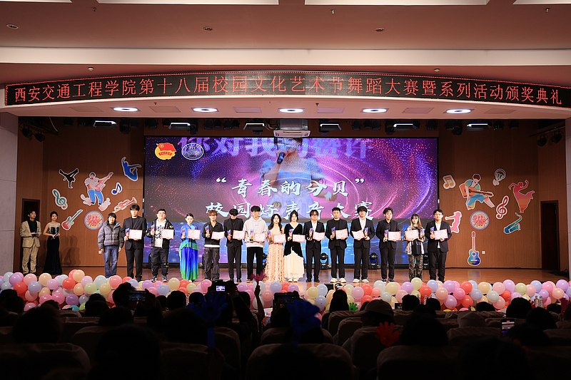 颁奖典礼环节成为典礼当晚的重要看点,活动依次颁发了校园辩论赛、校园好声音歌手大赛、主持人大赛及舞蹈大赛四大系列奖项。韩甬建等6名同学获辩论赛获得 “最佳辩手”称号,机械与电气工程学院、人文与管理学院、现代技术学院分别斩获辩论赛 “最佳风采奖”“亚军”“冠军”奖项;刘仁杰、余可欣等14名同学分获好声音歌手大赛各级奖项;付语饶、杨锦等6名同学在主持人大赛中脱颖而出;舞蹈大赛中,现代技术学院摘得一等奖,人文与管理学院、交通运输学院获二等奖,机械与电气工程学院、通信与人工智能学院、土木与铁道工程学院获三等奖,在场领导分别为获奖集体和个人颁奖,掌声与欢呼声此起彼伏,见证每份努力的荣光。