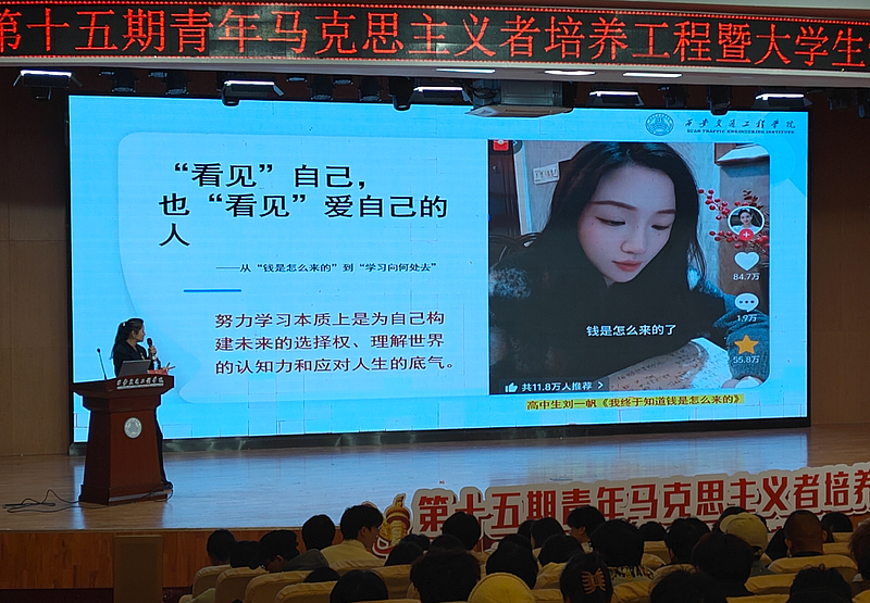 马克思主义学院院长李艳以《马克思主义中国化的三次飞跃》为题开启首讲。她从理论渊源与实践必要性出发,系统梳理了毛泽东思想、中国特色社会主义理论体系、习近平新时代中国特色社会主义思想三次飞跃的历史逻辑与时代价值。既用“农村包围城市”的革命案例解读第一次飞跃的突破性意义,也结合改革开放后市场经济探索阐释第二次飞跃的实践价值,更以新时代脱贫攻坚、科技自立自强等实例,解析第三次飞跃对当下青年成长的指引作用。课程最后,李艳老师还引导学员结合自身团学工作,探讨“如何用党的创新理论解决实际问题”,推动理论学习从“听懂”向“会用”转化。